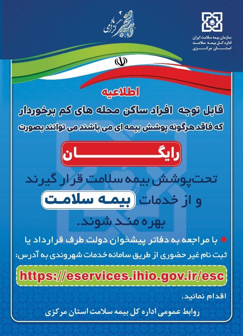 طرح بیمه نمودن افراد فاقد پوشش بیمه ای در محله های کم برخوردار ۰۳ اسفند ۱۴۰۰ | ۱۲:۴۸ کد : ۲۴۱۷۷ اطلاعیه ارسال به دیگران نام شما ایمیل شما ایمیل دریافتکننده ارسال انصراف تعداد بازدید:۲۶۱۱۸