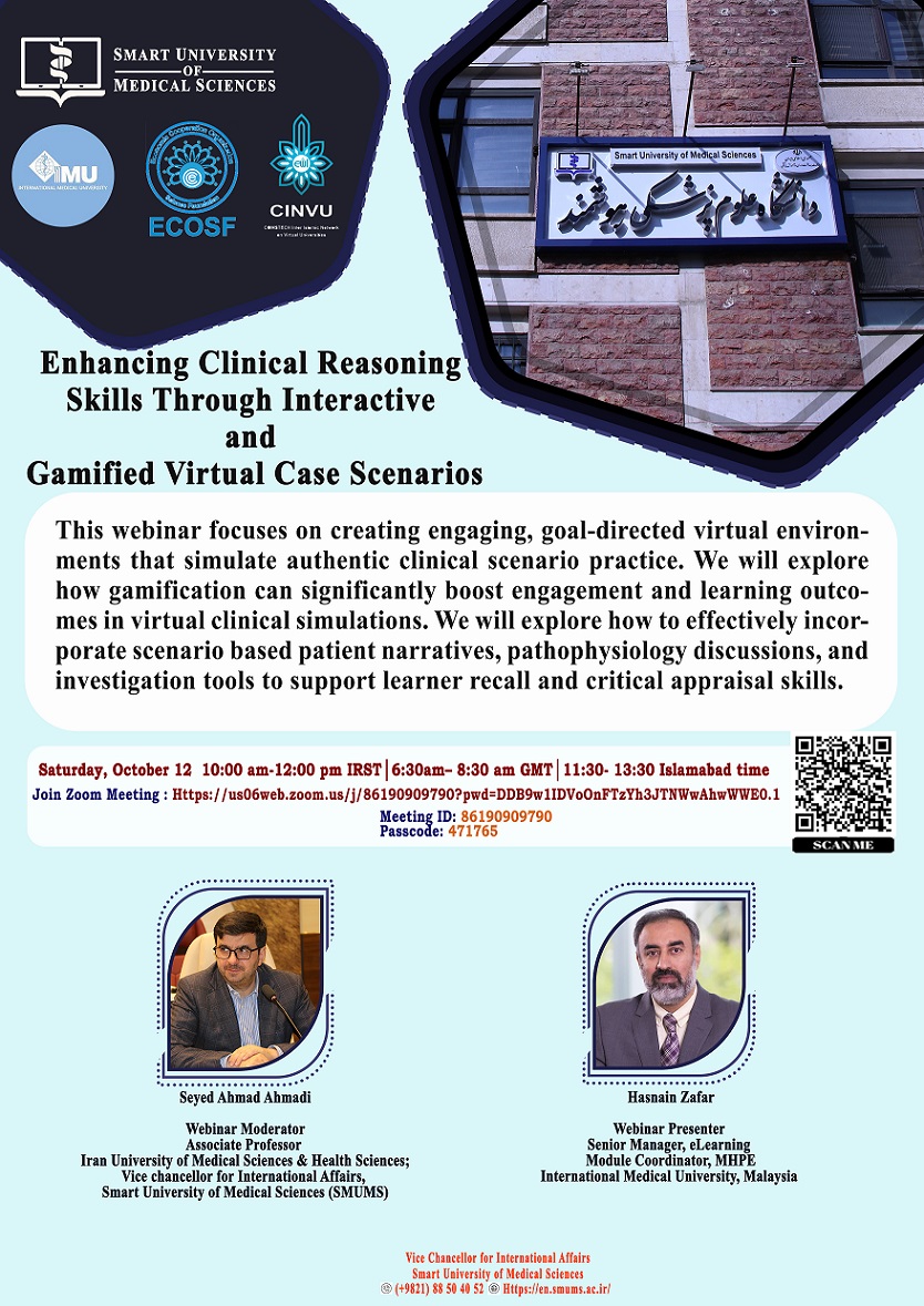 اطلاع رسانی وبینار بین المللی  " Case Enhancing Clinical Reasoning Skills Through Interactive and Gamified Virtual "