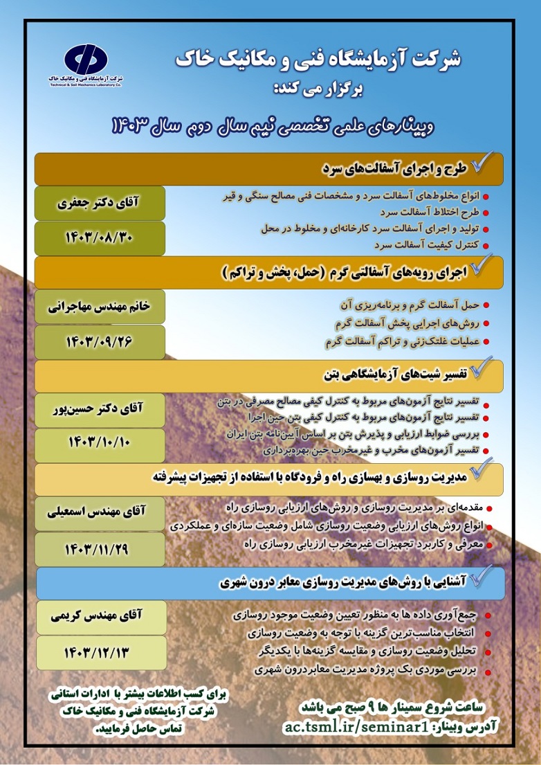 وبینارهای علمی تخصصی شرکت آزمایشگاه فنی و مکانیک خاک ۲۶ آبان ۱۴۰۳ | ۱۲:۵۰ کد : ۴۷۷۳۴ اطلاعیه ارسال به دیگران نام شما ایمیل شما ایمیل دریافتکننده ارسال انصراف تعداد بازدید:۹۴۳۰ برگزاری وبینارهای علمی تخصصی نیم سال دوم سال ۱۴۰۳ شرکت آزمایشگاه فنی و مکانیک خاک