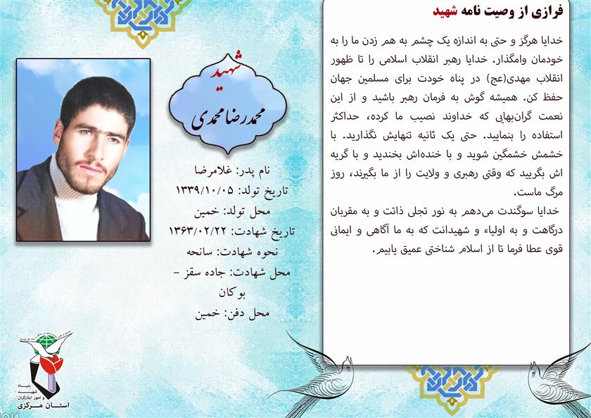 فرازی از وصیت نامه شهید بزرگوار محمدرضا محمدی :