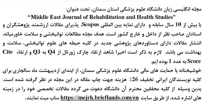 پذیرش مقاله در مجله توانبخشی و سلامت خاورمیانه