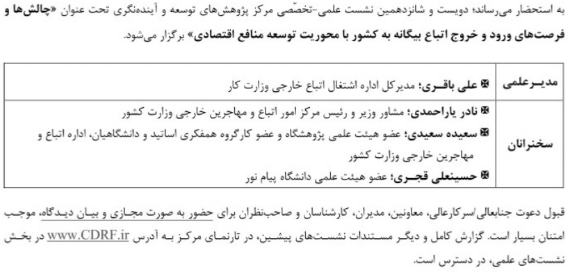 نشست علمی - تخصصی "چالش ها و فرصت های ورود و خروج اتباع بیگانه به کشور با محوریت توسعه منافع اقتصادی"