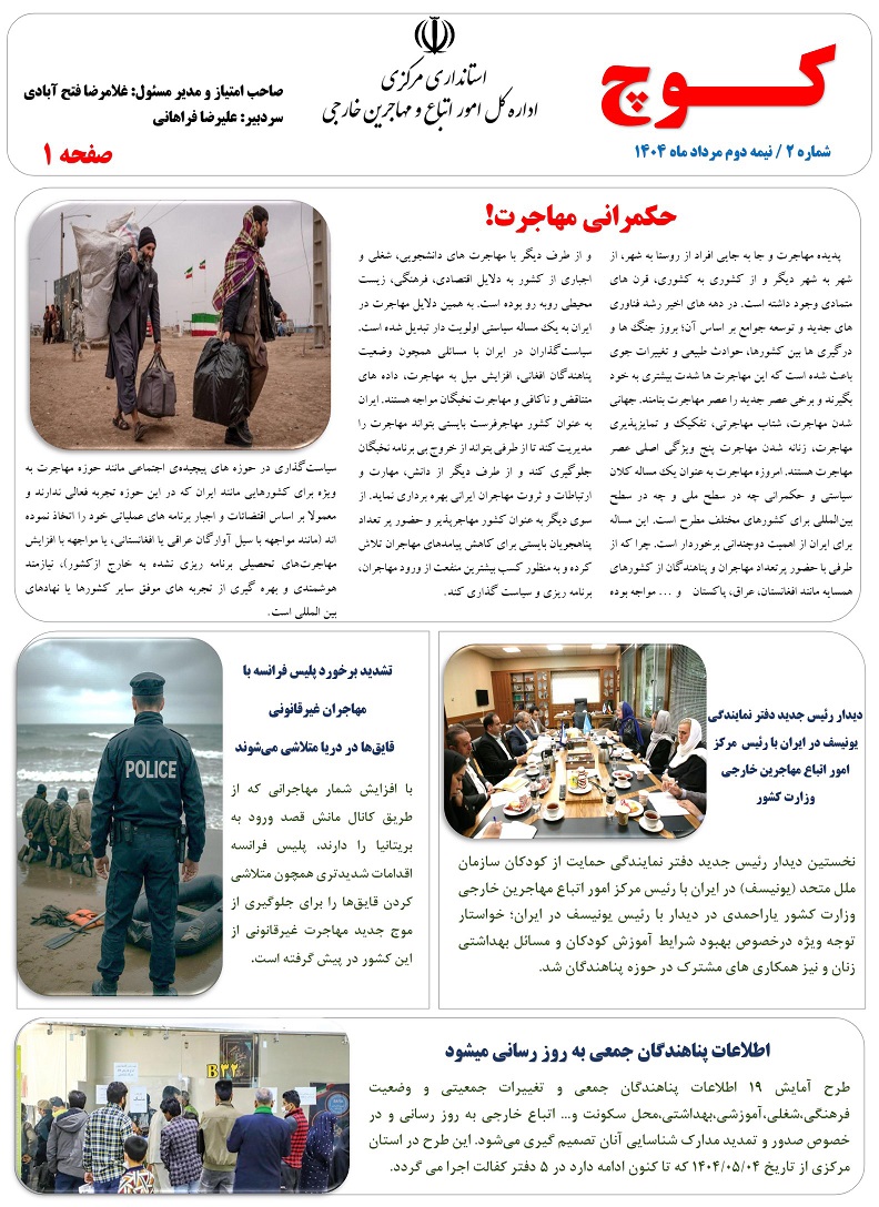 دومین شماره نشریه کوچ توسط دفتر امور اتباع و مهاجرین خارجی استان مرکزی منتشر گردید.