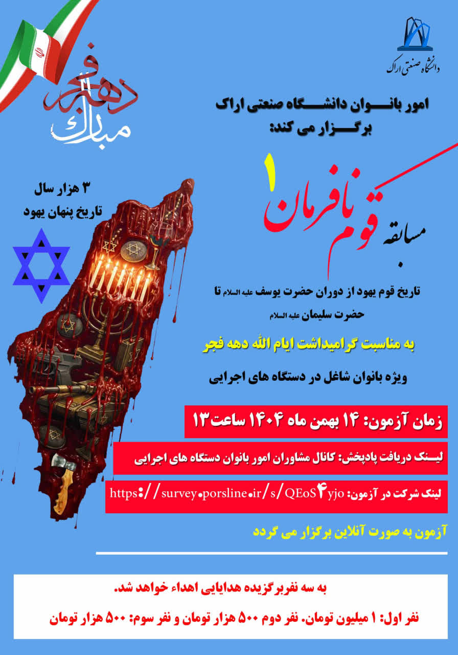 مسابقه قوم نافرمان ۰۸ بهمن ۱۴۰۴ | ۱۰:۳۹ کد : ۵۷۷۴۳ اطلاعیه ارسال به دیگران نام شما ایمیل شما ایمیل دریافتکننده ارسال انصراف تعداد بازدید:۷۵ برگزاری مسابقه قوم نافرمان، در ایام الله دهه فجر